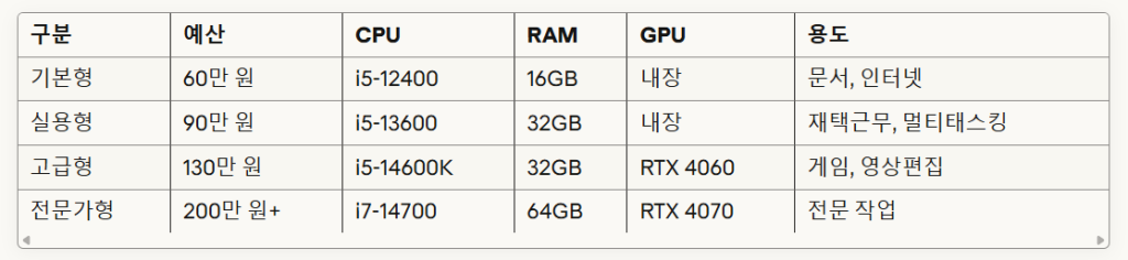💼 직장인용 컴퓨터 사양 (80~120만 원대)